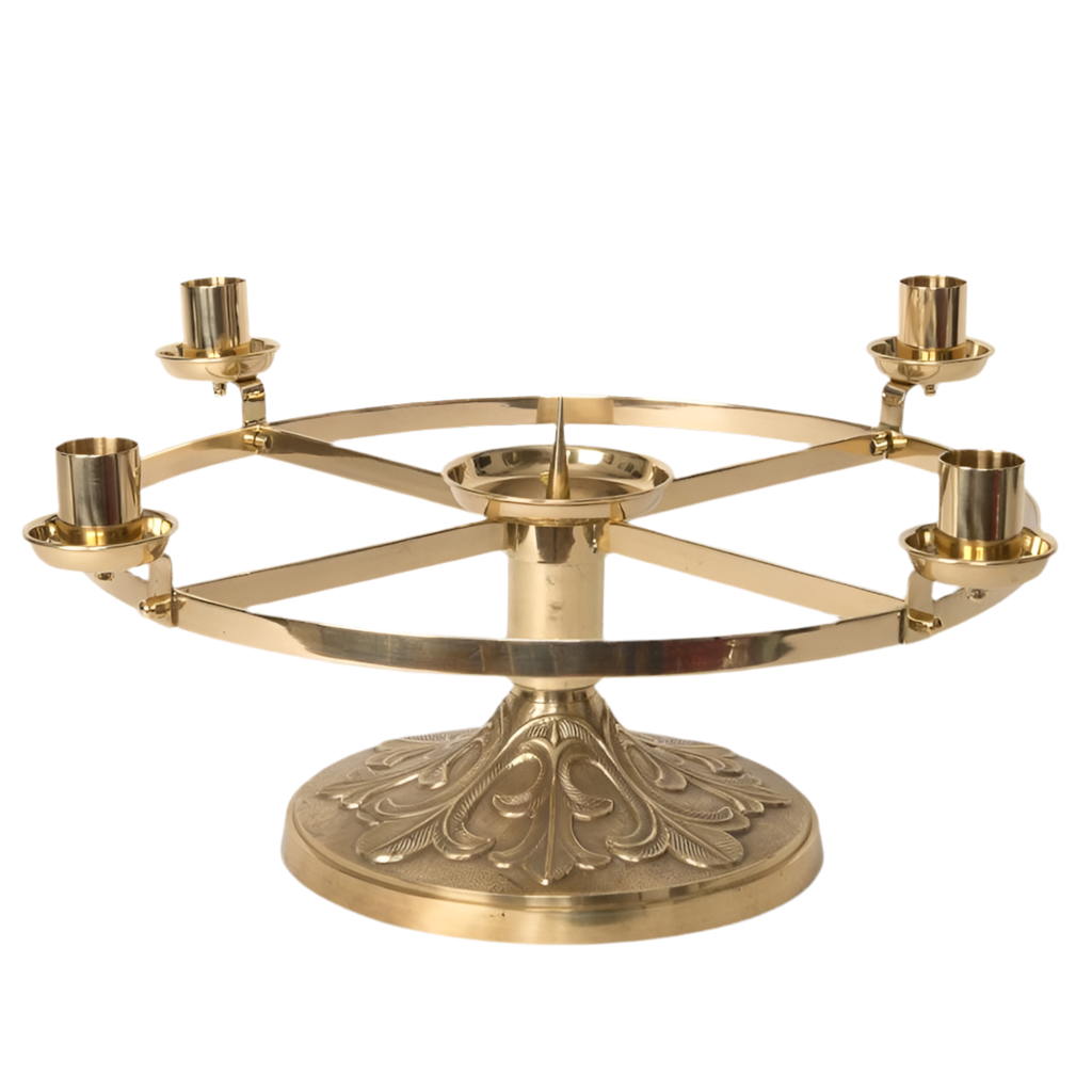 Item Information: Advent Candle Wreath: 3 Pieces (Center Candle, Round Wreath, Base Available on many different bases and many different heights.