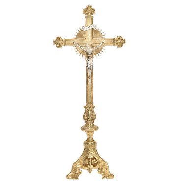 24" Shorter Altar Cross with silver plated corpus and INRI to match our H-135 Short Candlestick.