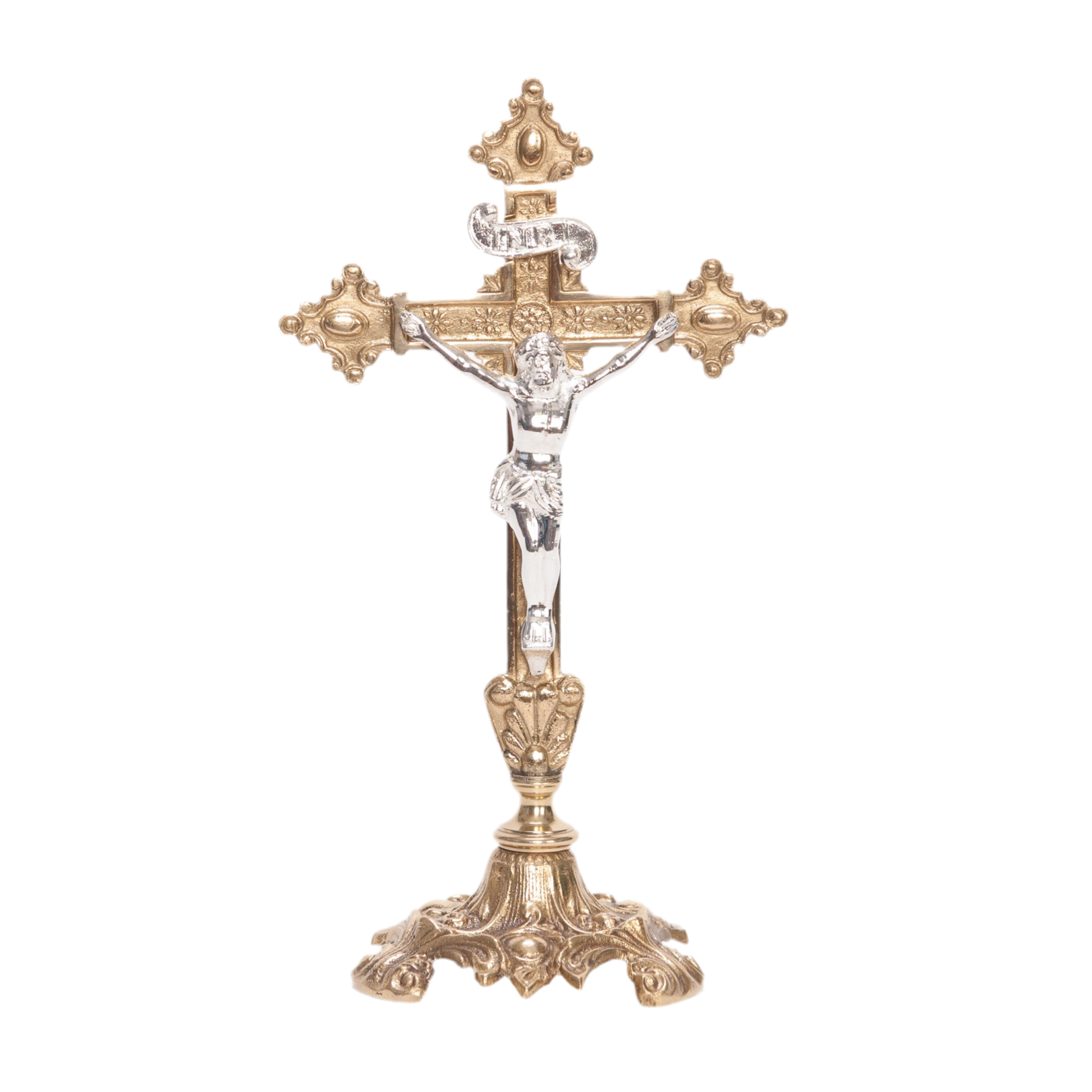 Brass Altar Cross with Silver Plated Corpus and INRI.