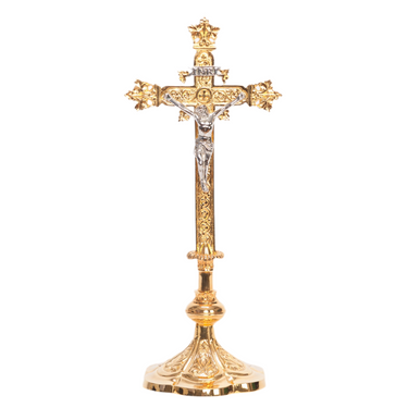 Traditional Gold plated 12 1/2" Altar Cross with silver plated corpus and INRI.