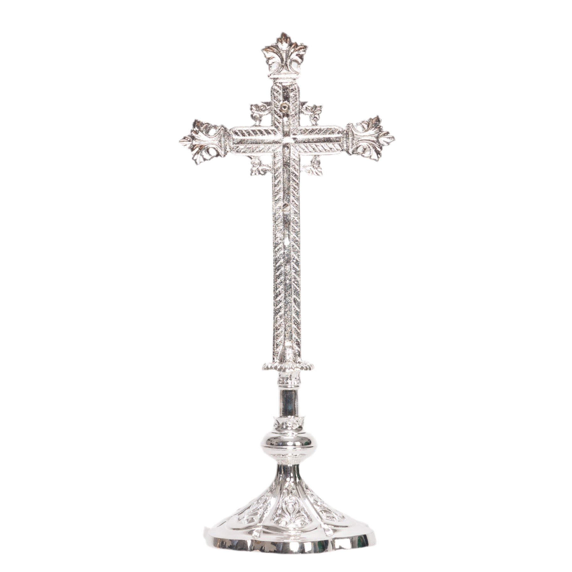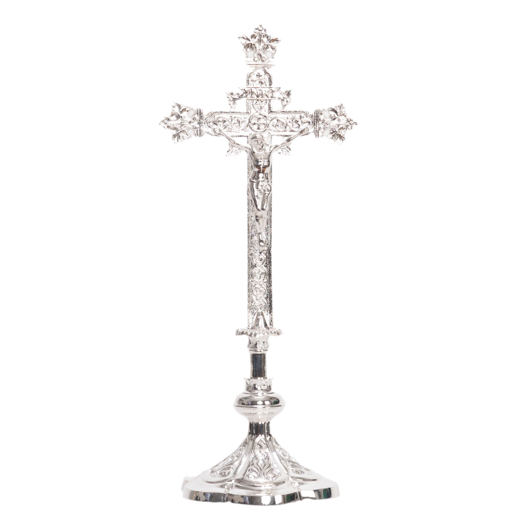 Traditional 12 1/2" silver plated altar cross with corpus and INRI.