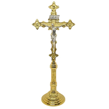 31" tall Gold plated Altar Cross with silver plated corpus and INRI.