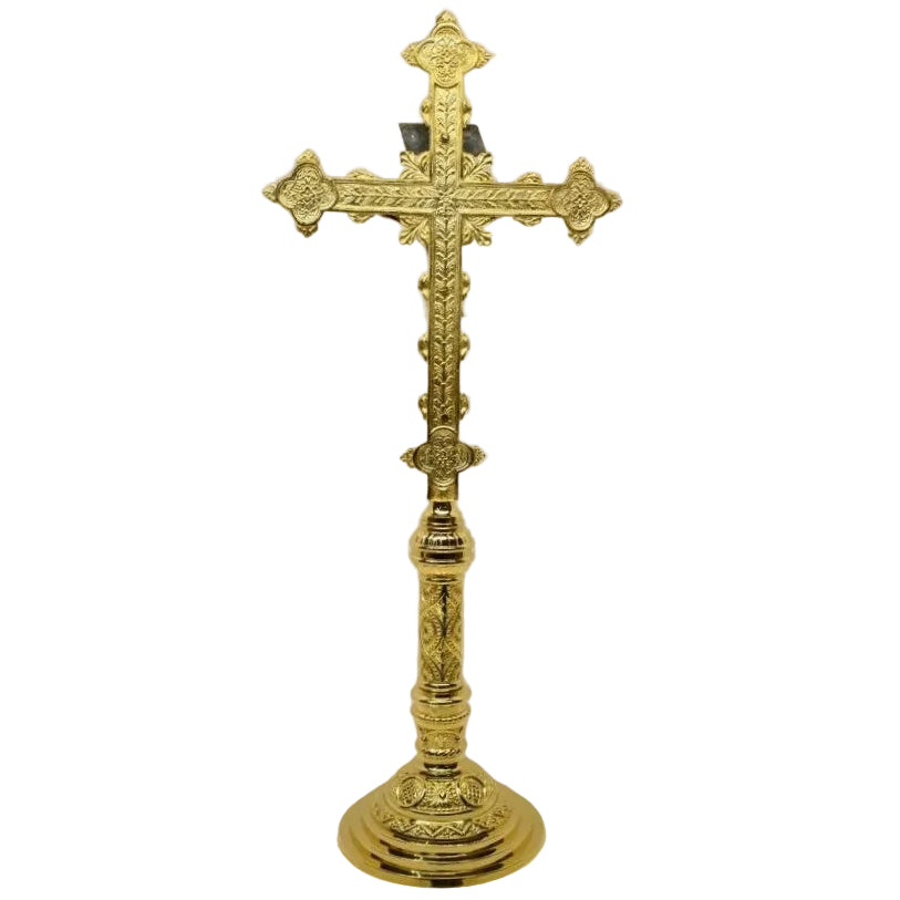 *PLEASE NOTE: THIS ALTAR CROSS IS NO LONGER MADE WITH THE FEET. IT WILL HAVE A FLAT ROUND BASE AS SHOWN*