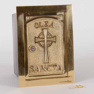 A wall-mounted cabinet used to reverently store the Holy Oils, designed to provide a secure and dignified preservation in accordance with Liturgical tradition.