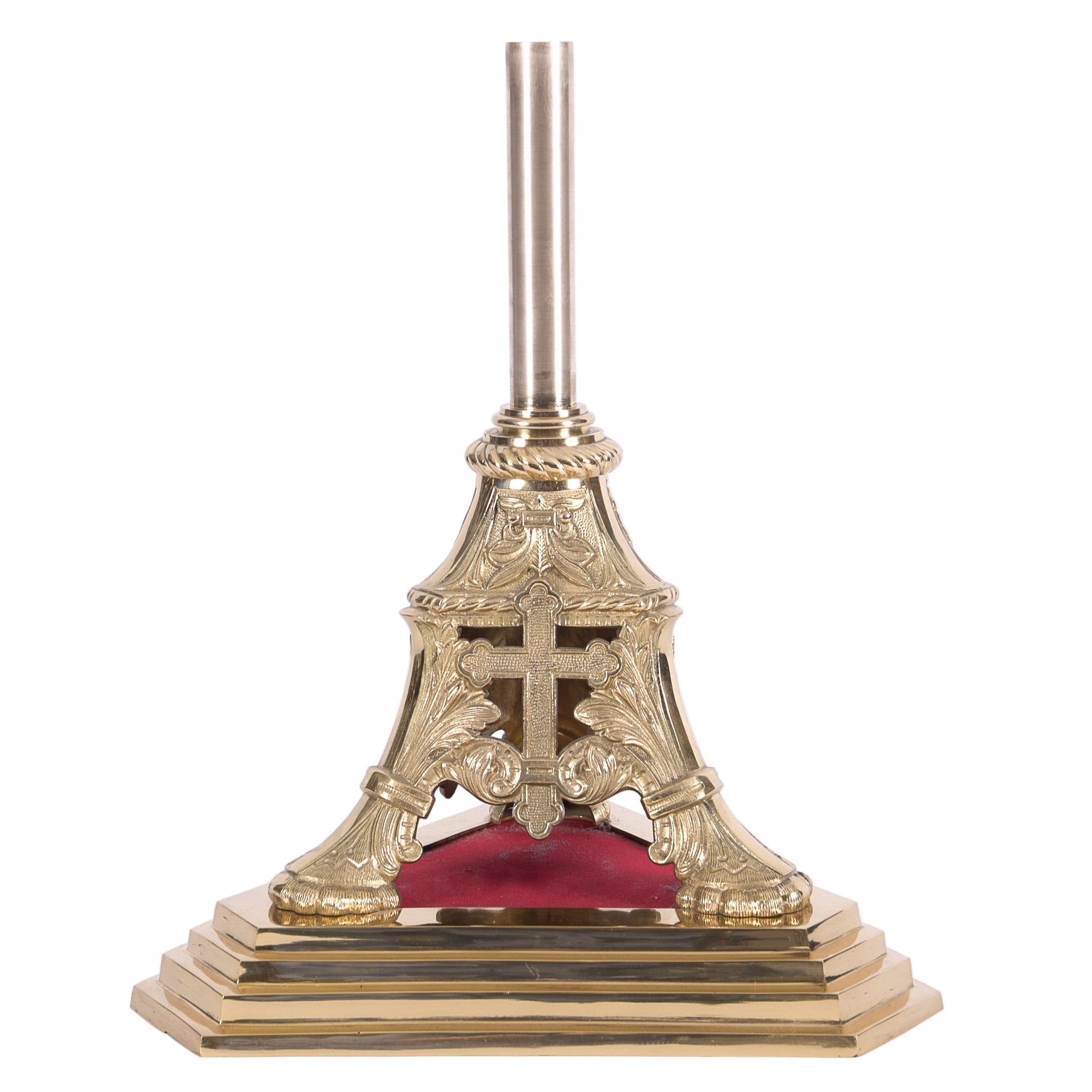 Polished Brass and Lacquered Base Stand for Processional Cross.