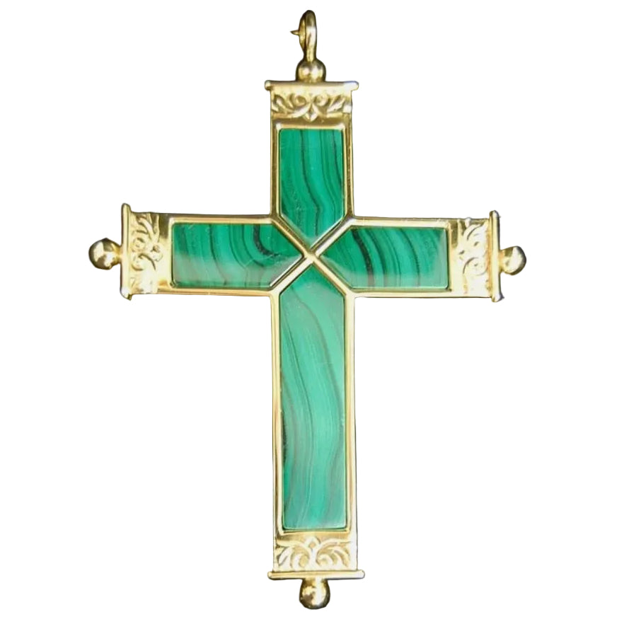 *Sterling Silver, Green Malachite Bishops Pectoral Cross