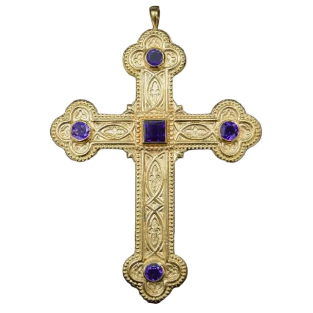 Beautiful Handcrafted Bishop's Pectoral Cross with Four Purple Amethysts.