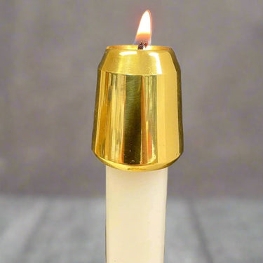 Candle followers are decorative brass toppers placed over candles to catch dripping wax and protect surfaces, while adding a polished, elegant look. Perfect for use on altar candles or processional candles, they combine practicality with beauty in every liturgical setting.