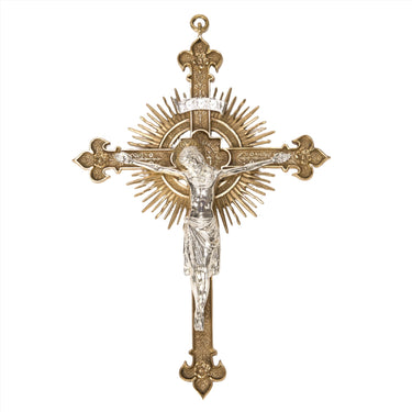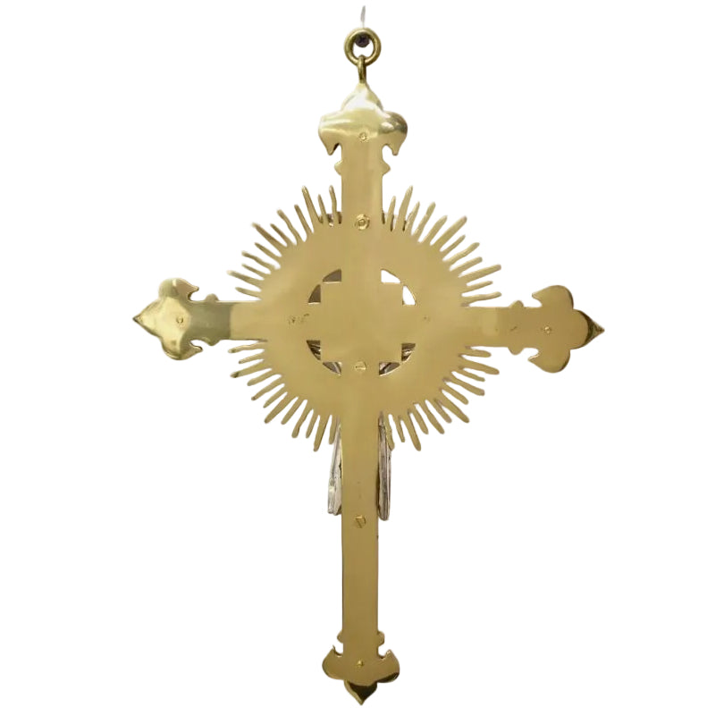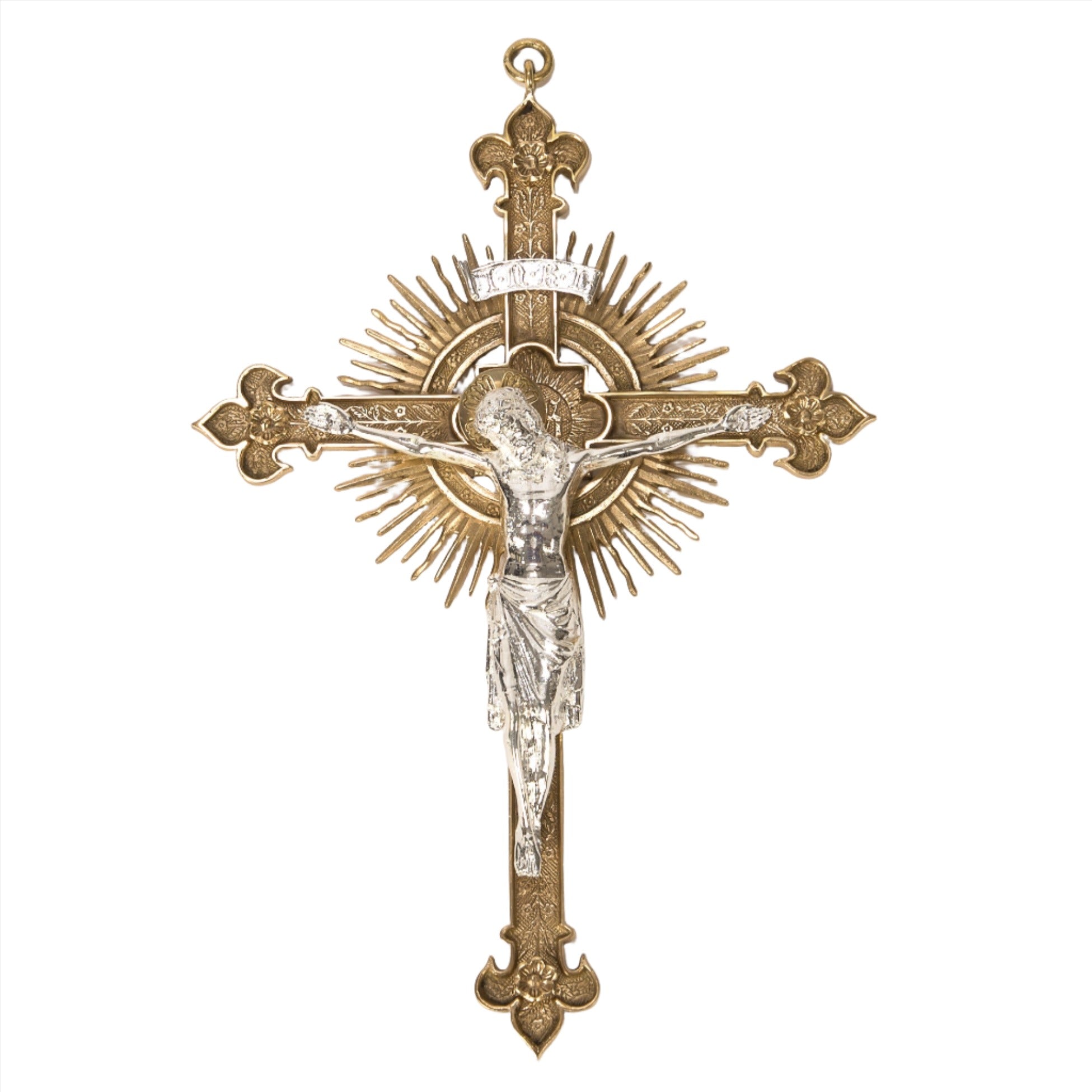 Large Wall Hung Crucifix in solid brass with silver plated corpus and "INRI".