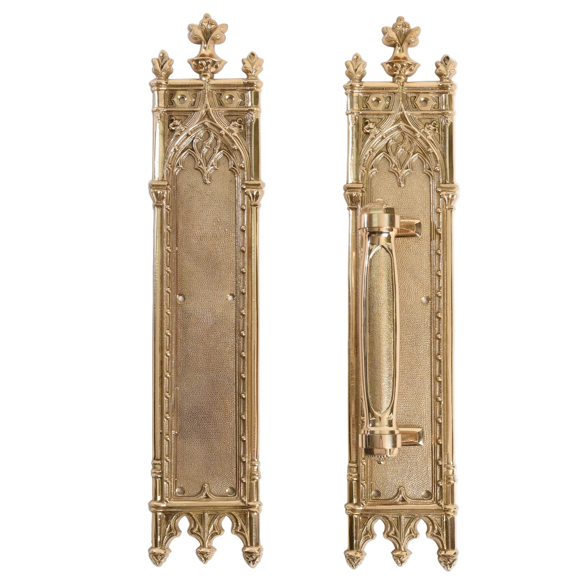 Decorative Church Door hardware in solid brass. Traditional Gothic Style.