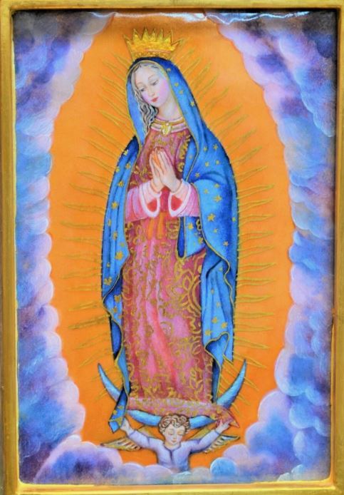 (PL87) Baked Enamel Panel of Our Lady of Guadalupe