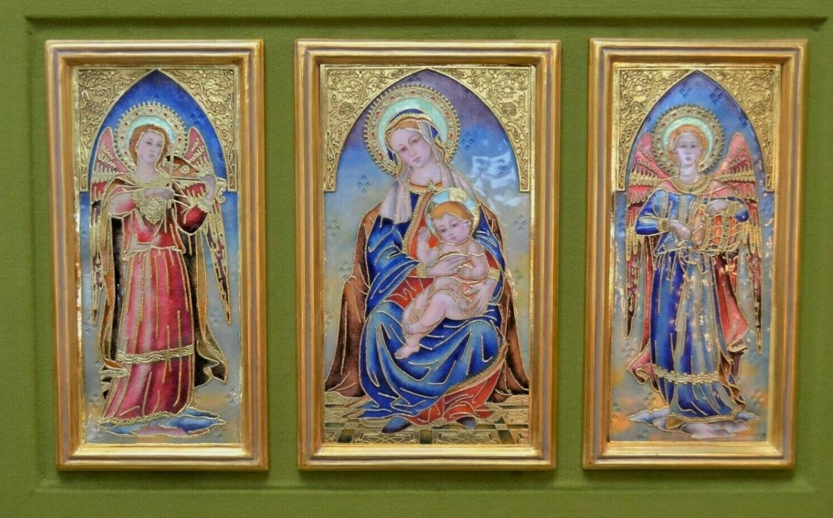 Genuine Baked Enamel Wall Panel of Madonna with Angels.