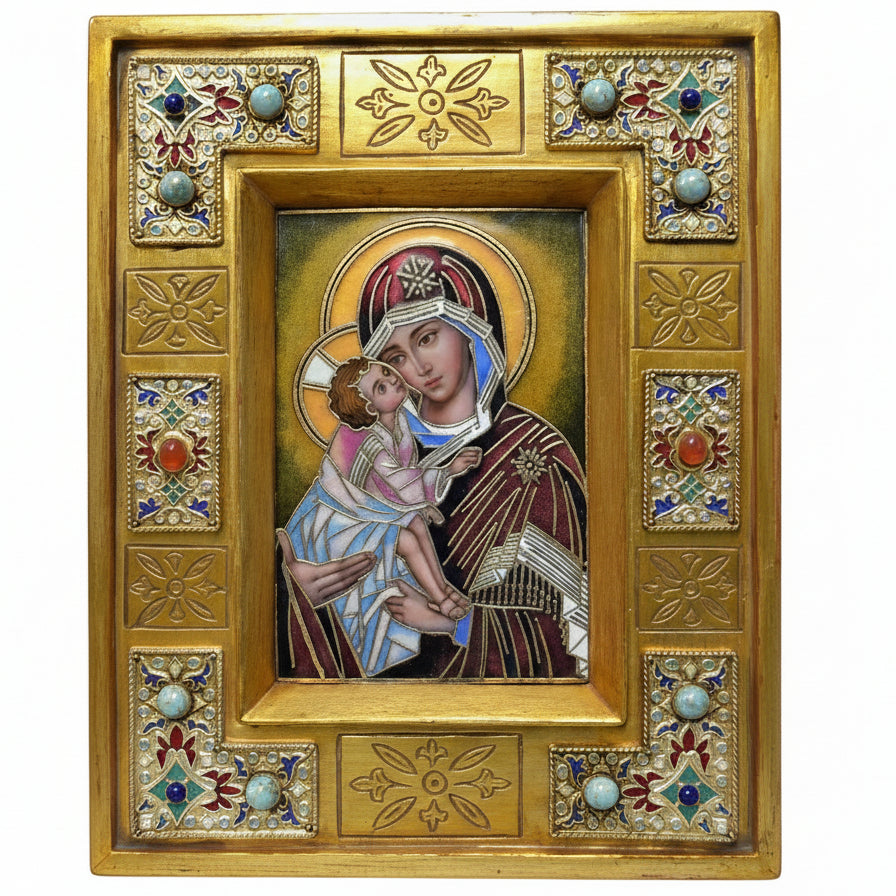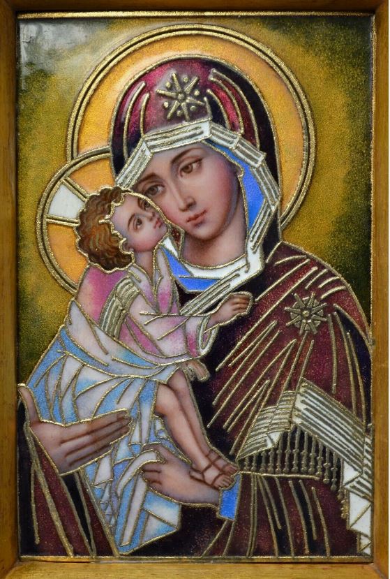 (T-10193) Baked Enamel Panel of Madonna and Child