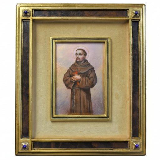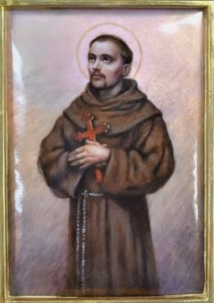 (T-113) Baked Enamel Panel of St. Francis of Assisi