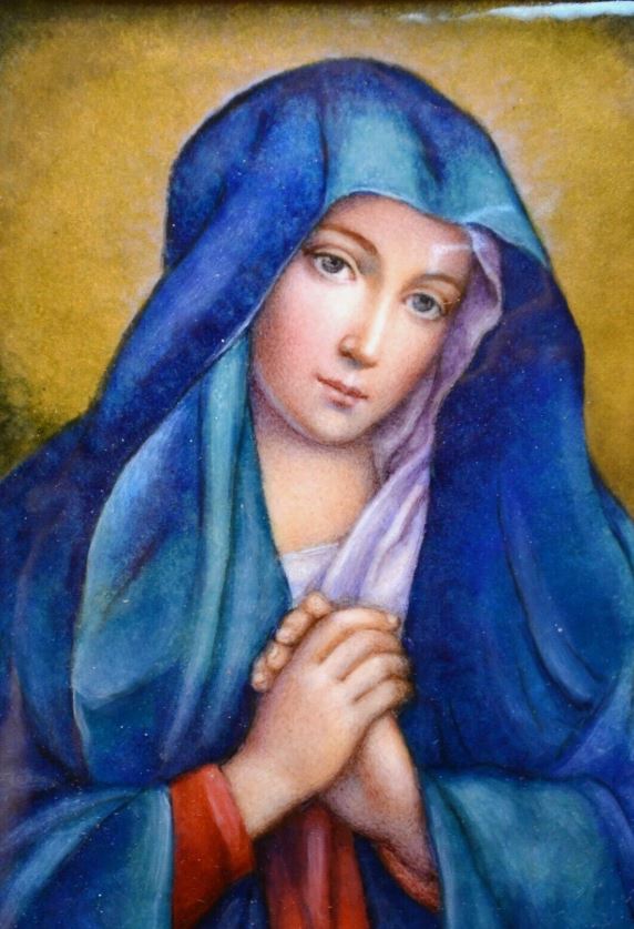 (T-121) Baked Enamel Panel of The Blessed Mother