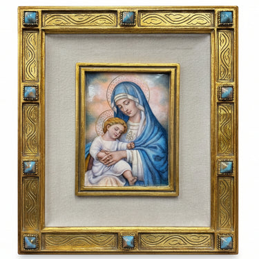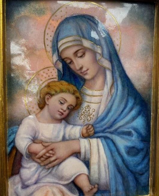 (T-131) Baked Enamel Panel of Mary with Child