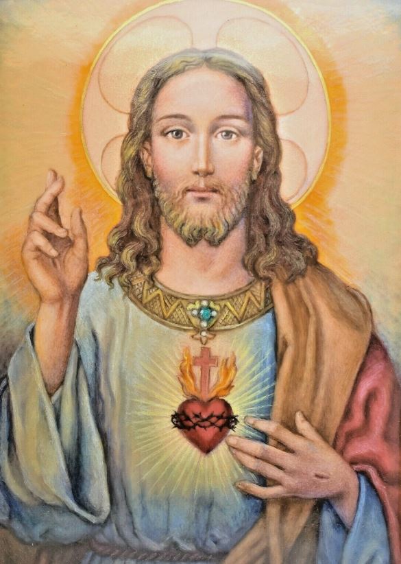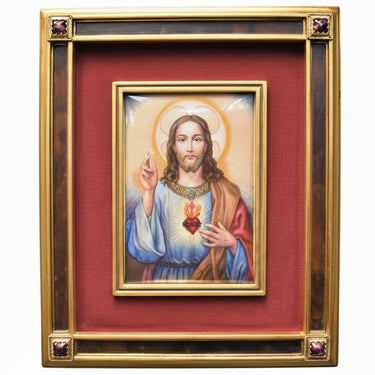 Genuine Baked Enamel Wall Panel of The Sacred Heart of Jesus.