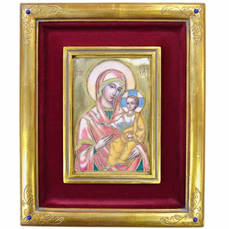 Genuine Baked Enamel Wall Panel of Mary with Child