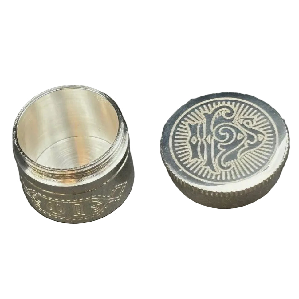 Single Holy Oil Stock, Silver Plated, 'O.I' with IHS engraved on CoverSizes: 1 1/8" diameter x 7/8" ht. Weight (lbs): 0.2 lbs.Available Finishes: Silver Plated, Brass