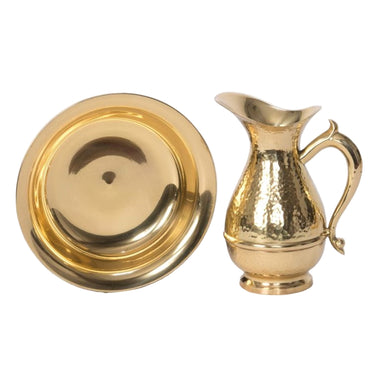 Hammered Finish Brass Lavabo Set, Ewer and Basin for Bishop Service.
