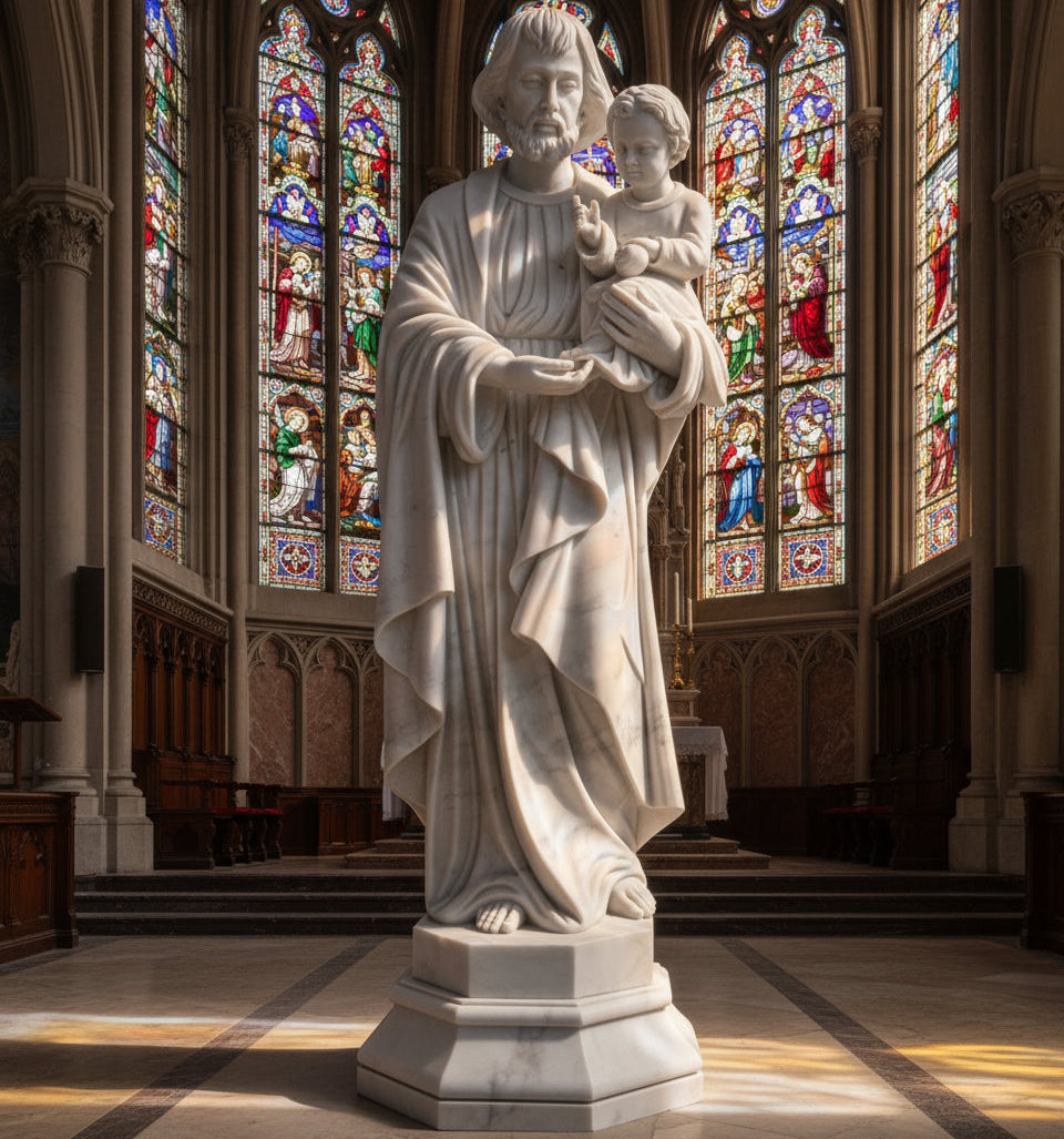 Lifesize Marble Statue of St. Joseph with Child