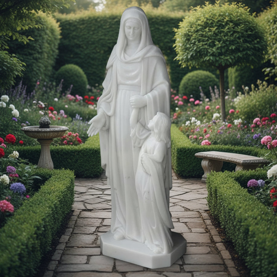 Large Marble Statue of St. Anne with Child Mary (TF437)