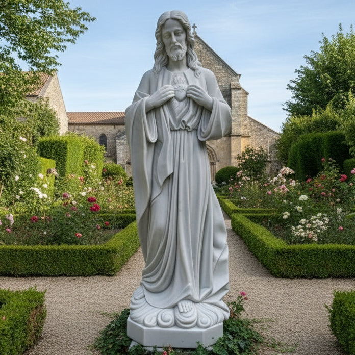 Large Marble Statue of The Sacred Heart of Jesus