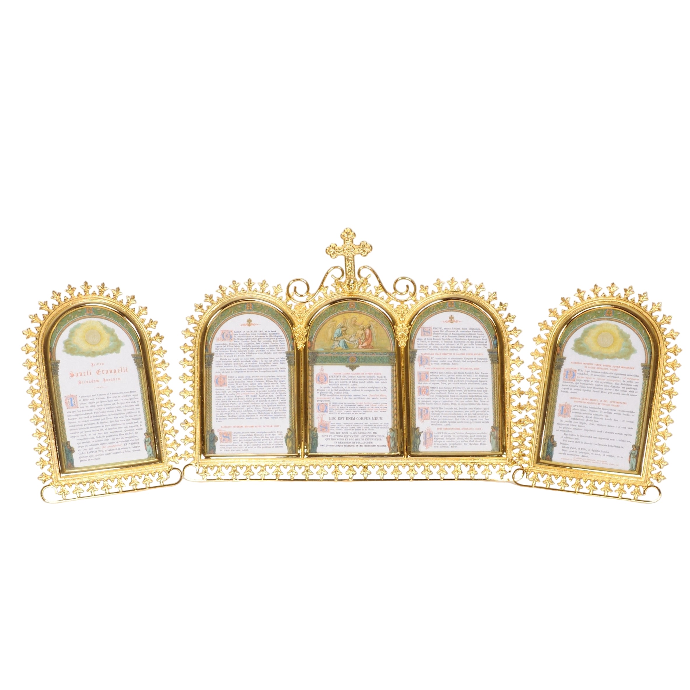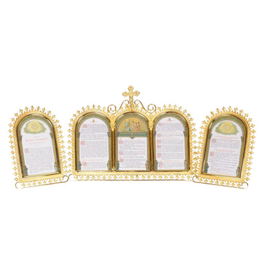 Traditional Gold plated Mass Card set (3 pcs.) with fold out legs to hold cards up.