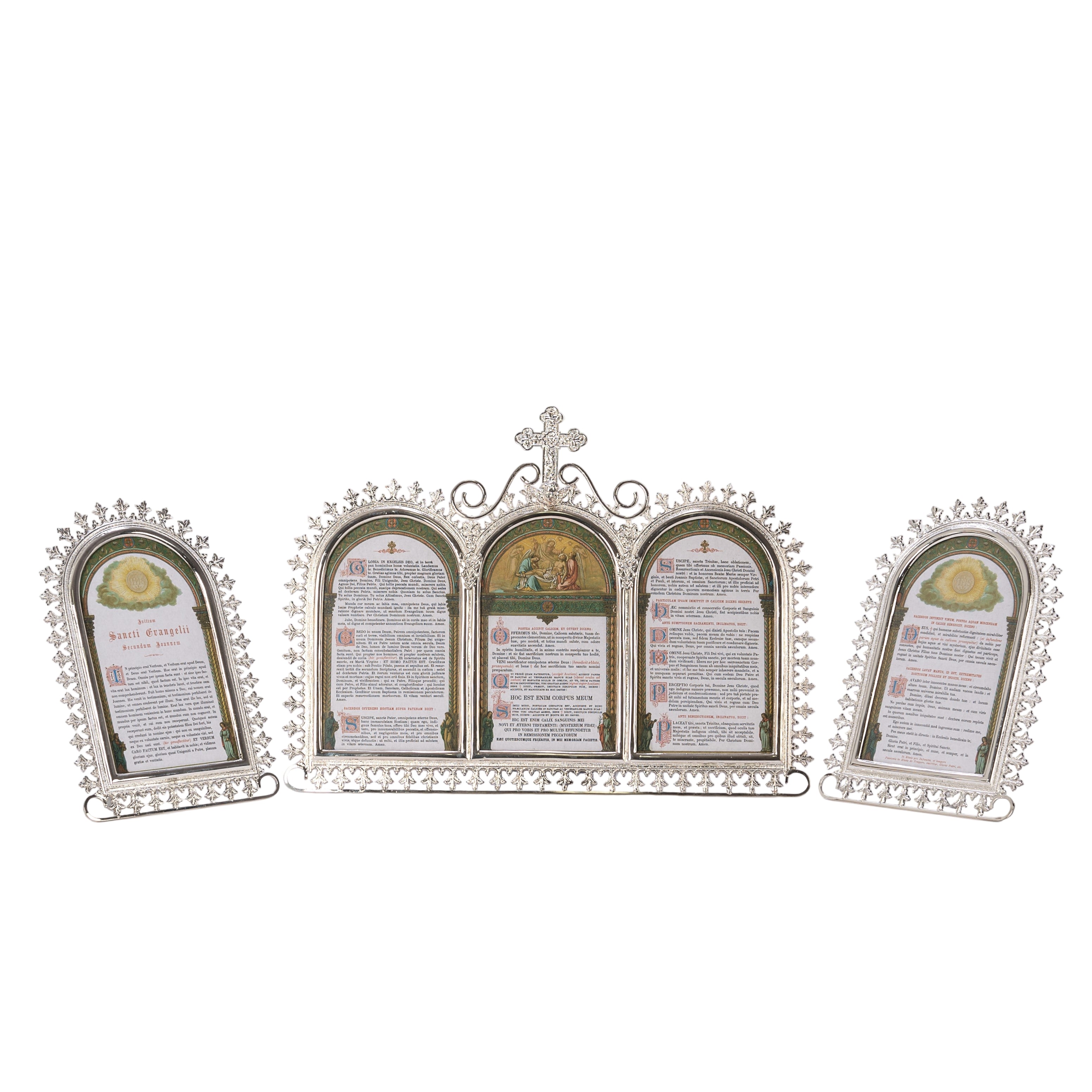 Silver plated Traditional Latin Mass Cards,  Set of 3 with fold out legs to hold cards up.