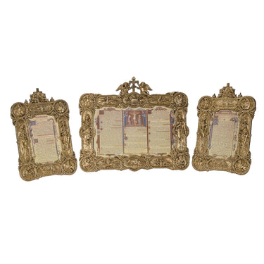 Sizes: Side Cards: Brass Frame- 11 1/2" x 17 1/2" Window- 5 3/4" x 9 1/2", Center Card: Brass Frame- 22" x 19 1/4" Window- 15" x 9"