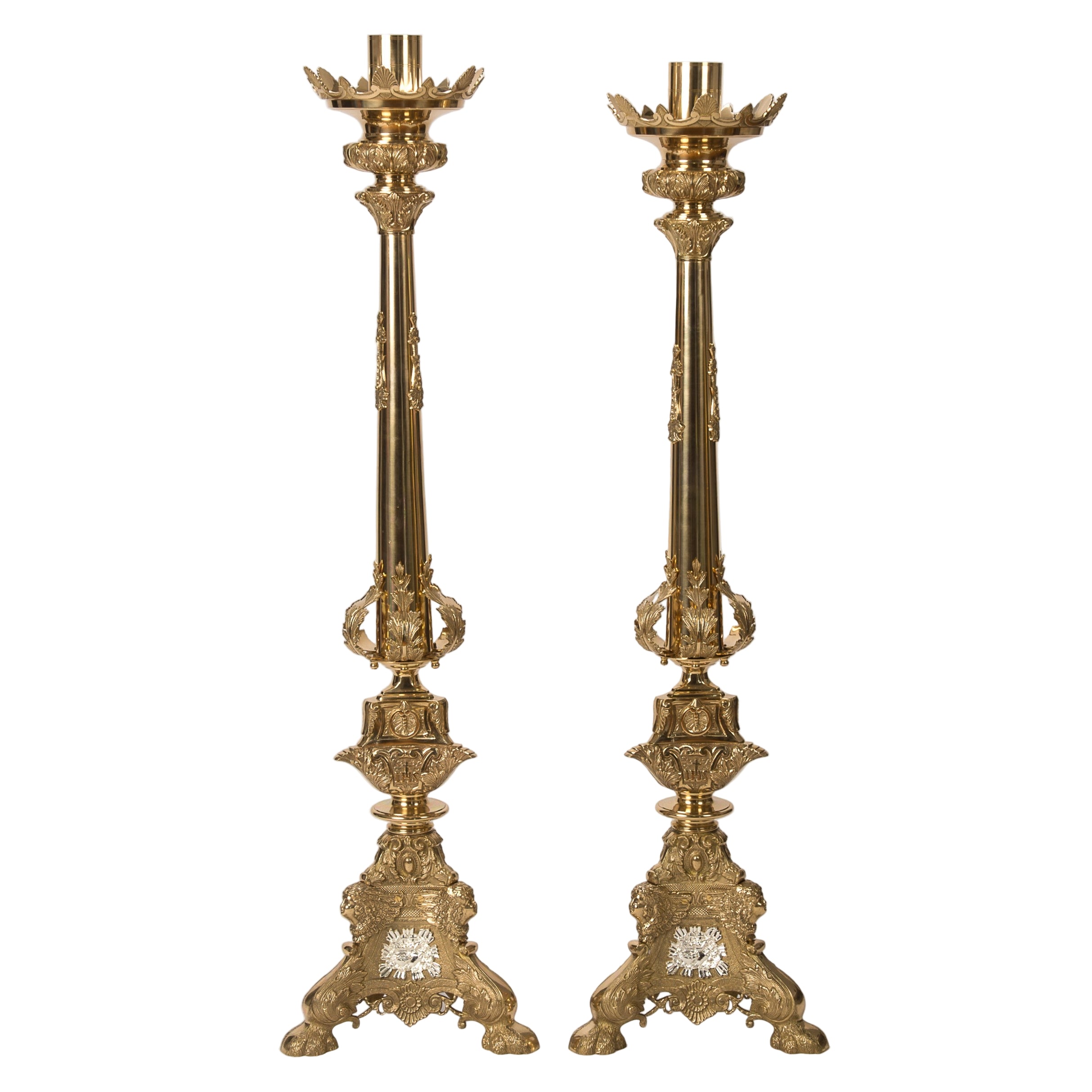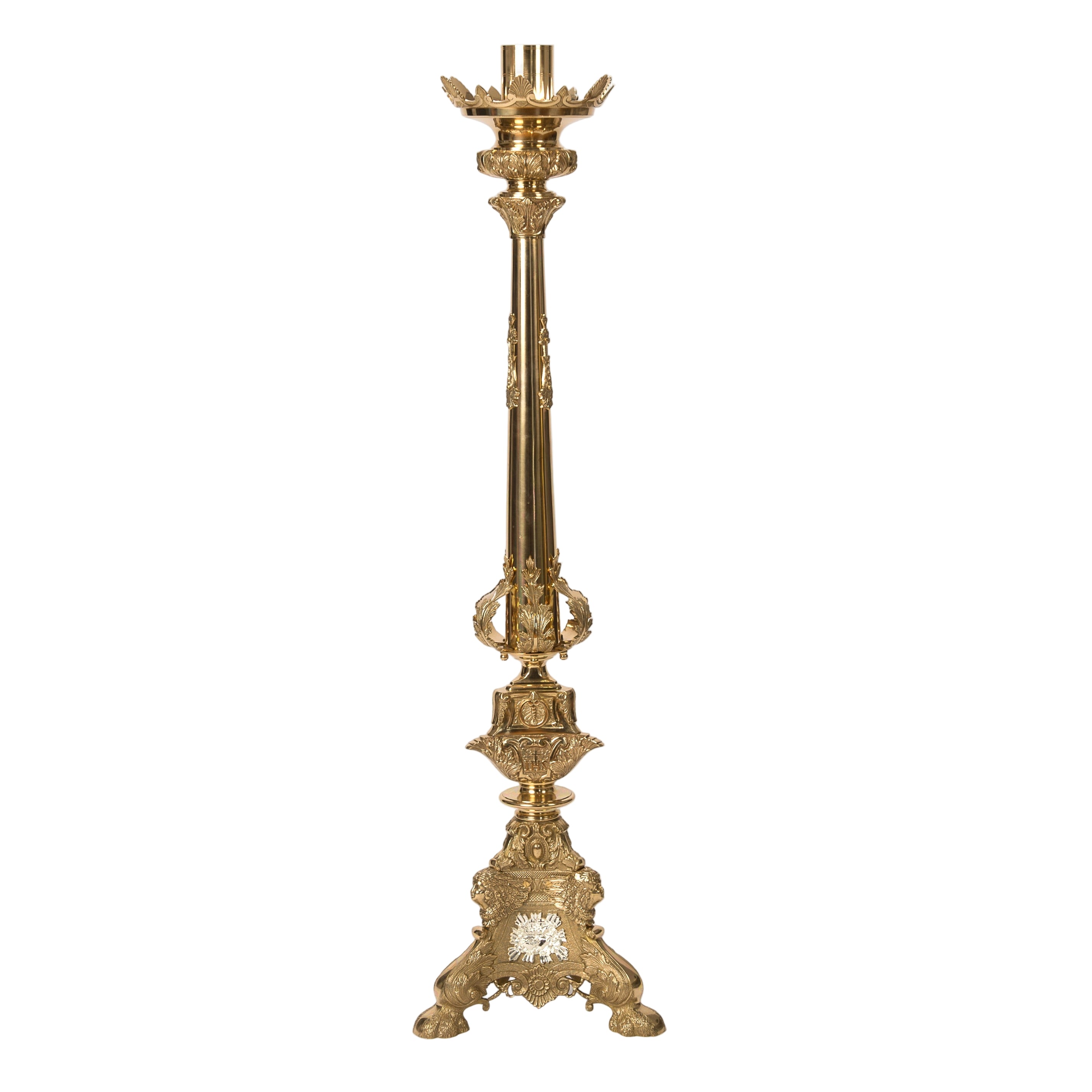 Sizes: 48" height.2 1/2" candle socketTriangular base measures 12 1/2" each side.Weight (lbs): 31lbs.