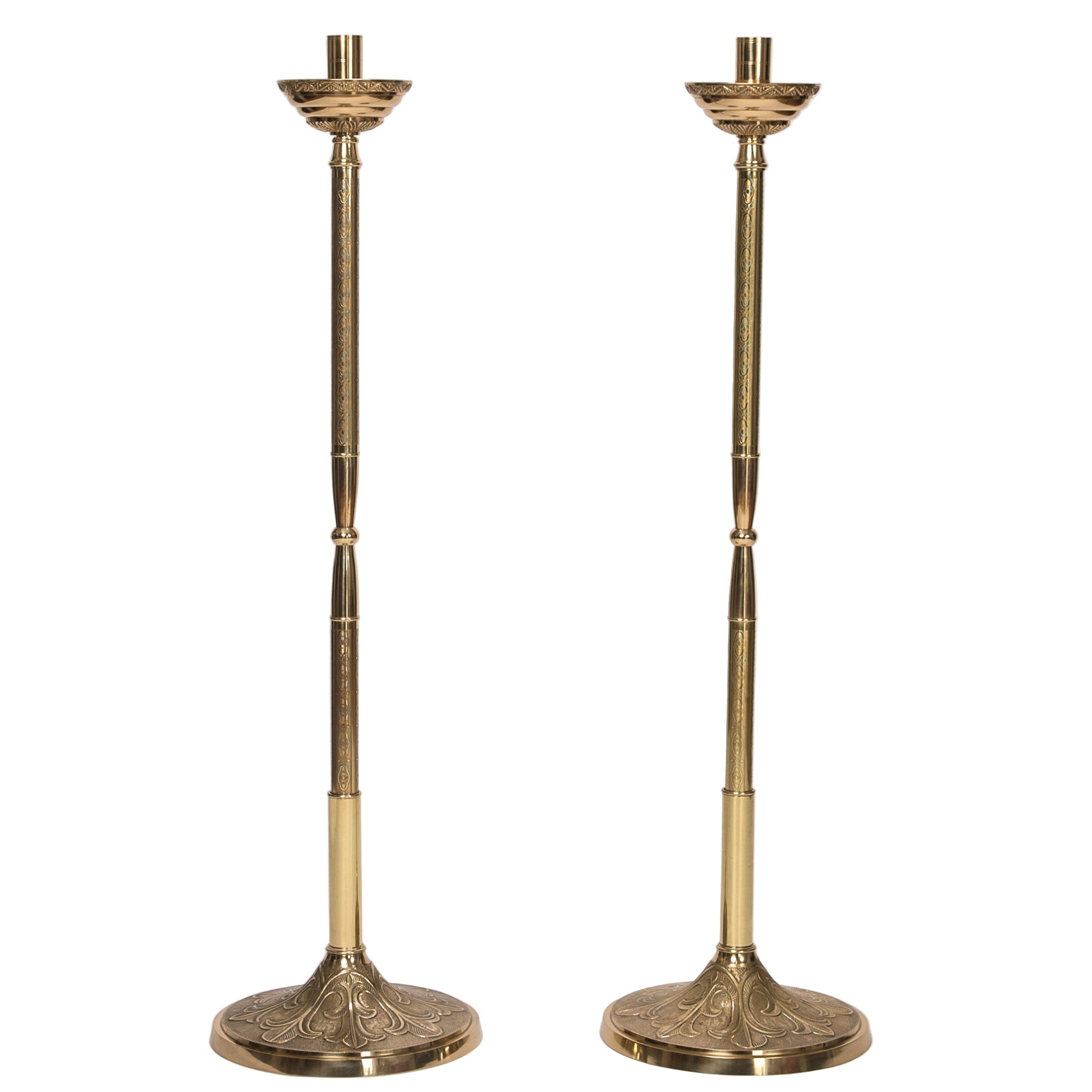 Acolyte/ Processional Candlestick with Decorated Ornate Pole and Base Stand Set.
