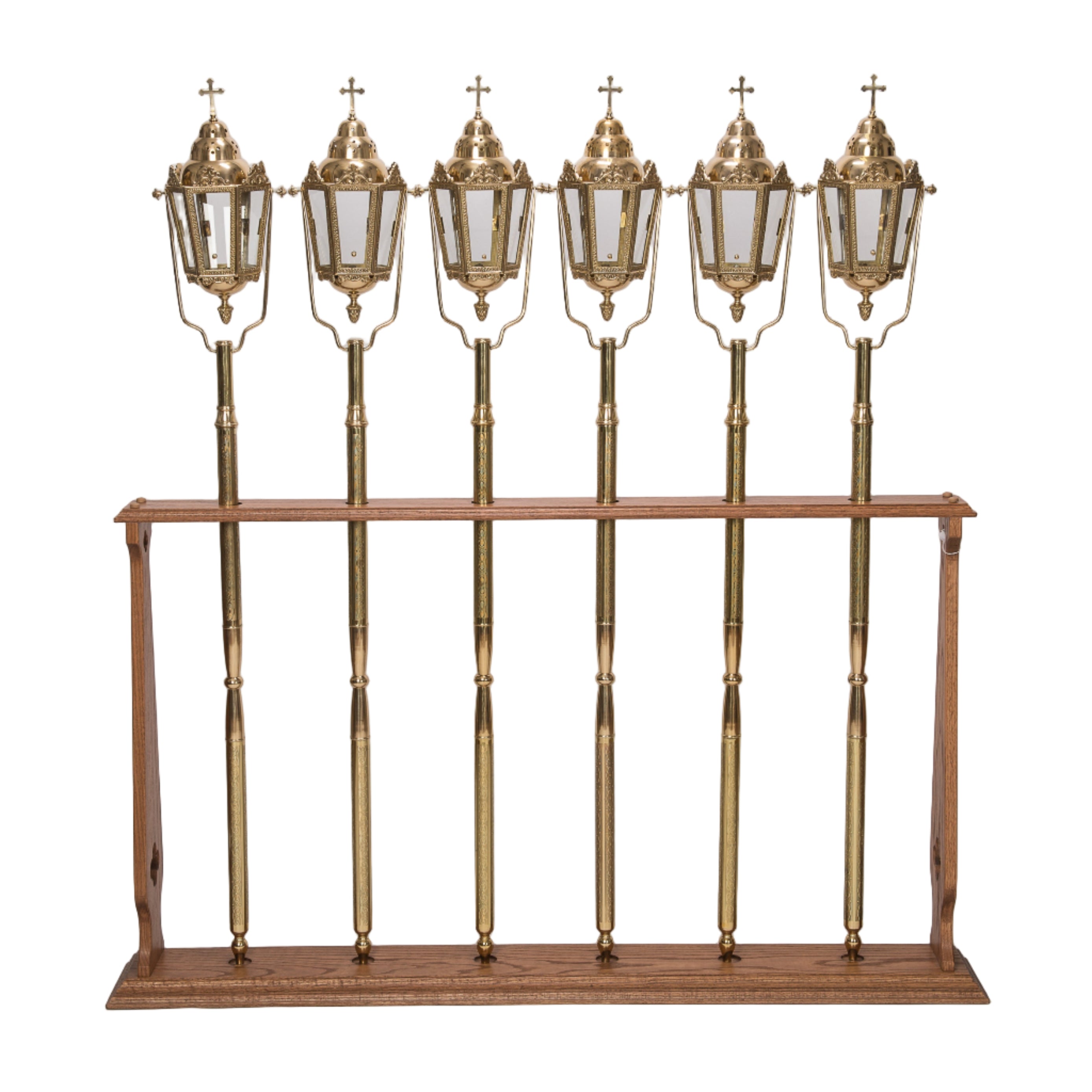 *H-130 Set of 6 Processional Lanterns with Oak Wood Stand