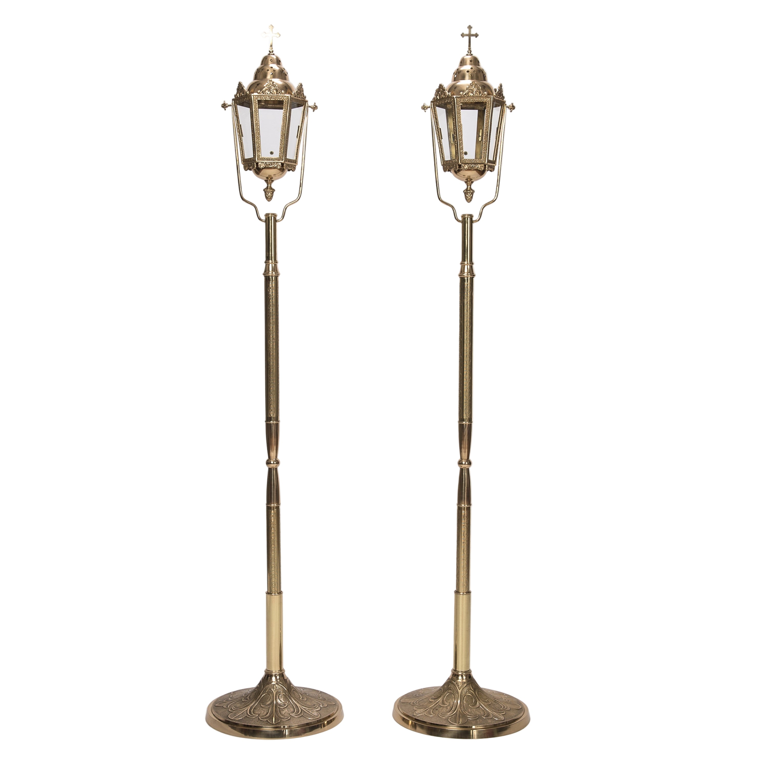 Traditional processional torch set with stationary base stand- sold as a set.
