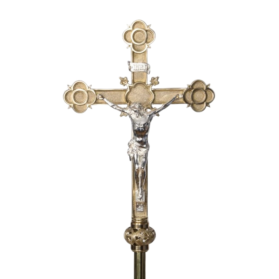 Traditional Cathedral size Processional Cross on 50" brass pole. Large size for the largest of sanctuaries.