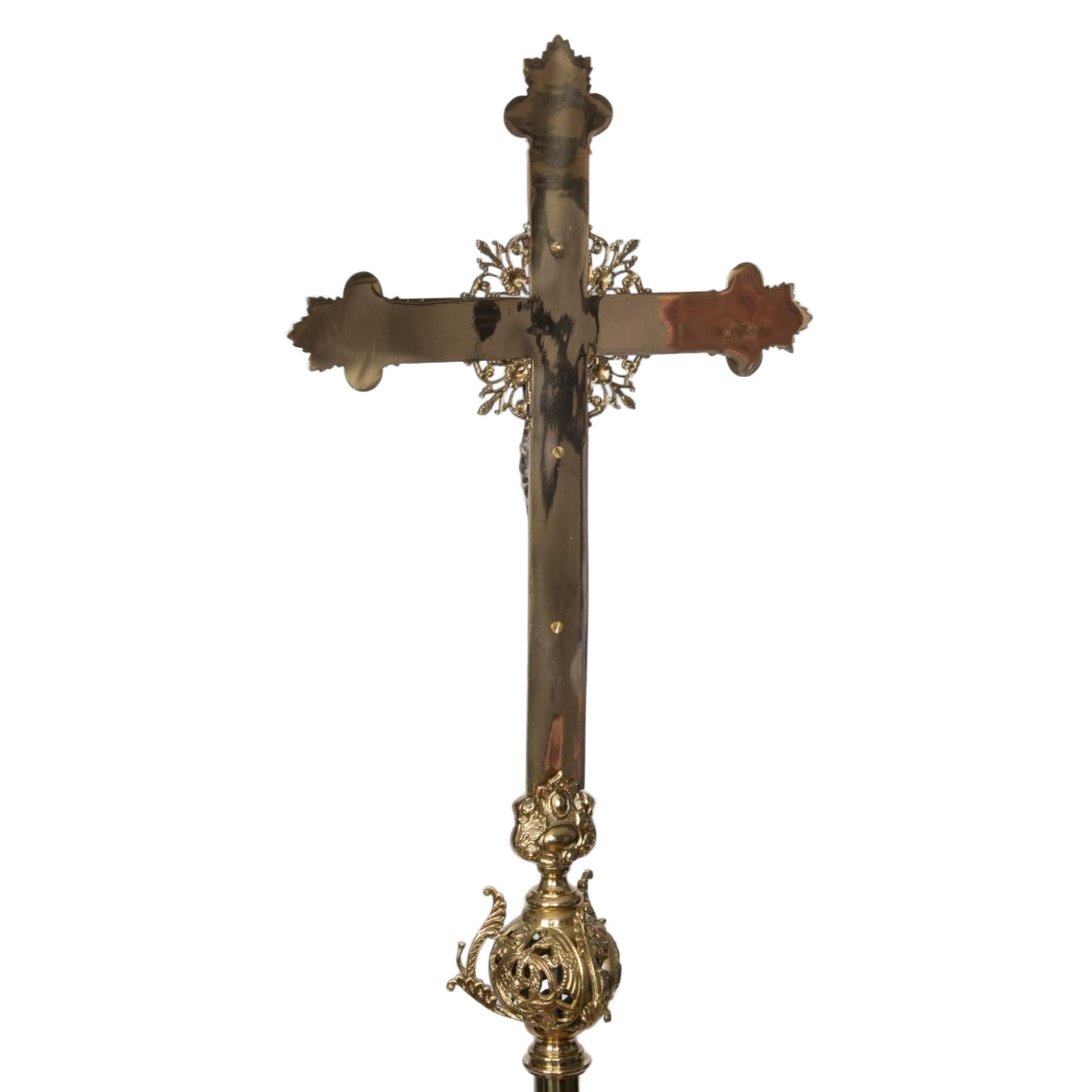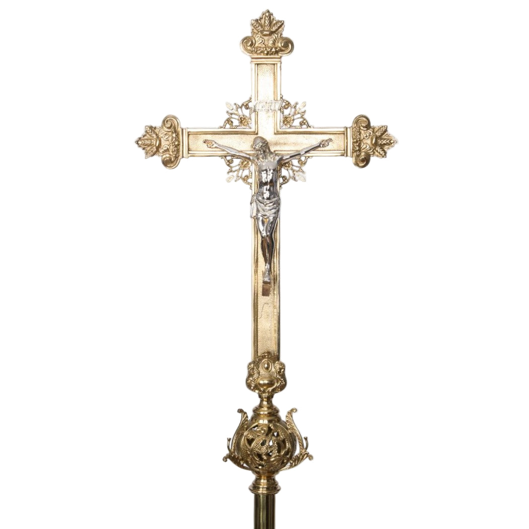 Very Large Cathedral Size Processional Cross set atop a 50" brass pole.