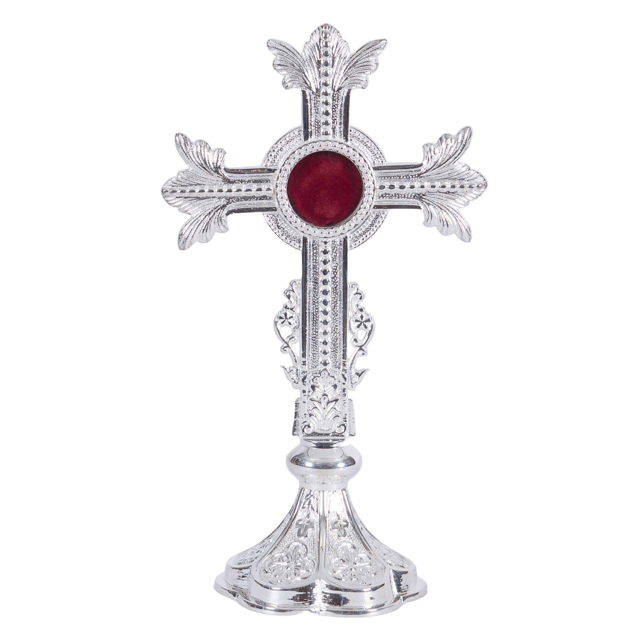 12" Silver plated Fleur De Lis Cross Reliquary.