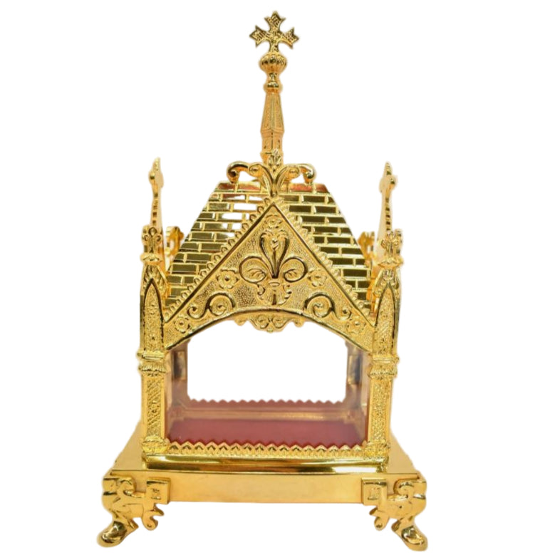 Front Glass View: 4 1/2" x 2 1/2" (un-obstructed) Glass View Side: 2 1/4" x 2 3/4" Relic Compartment Inside: 5"x 2 3/4"x 3 1/4"H, Base 7 1/4" x 2 1/2"