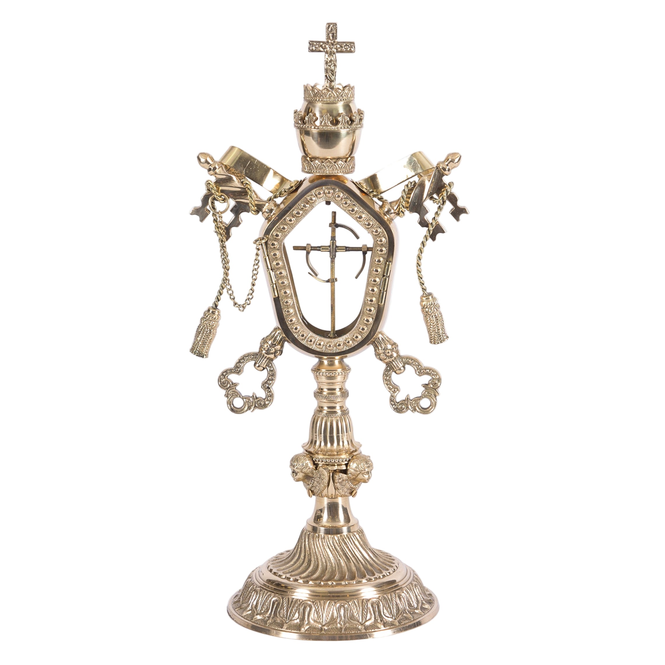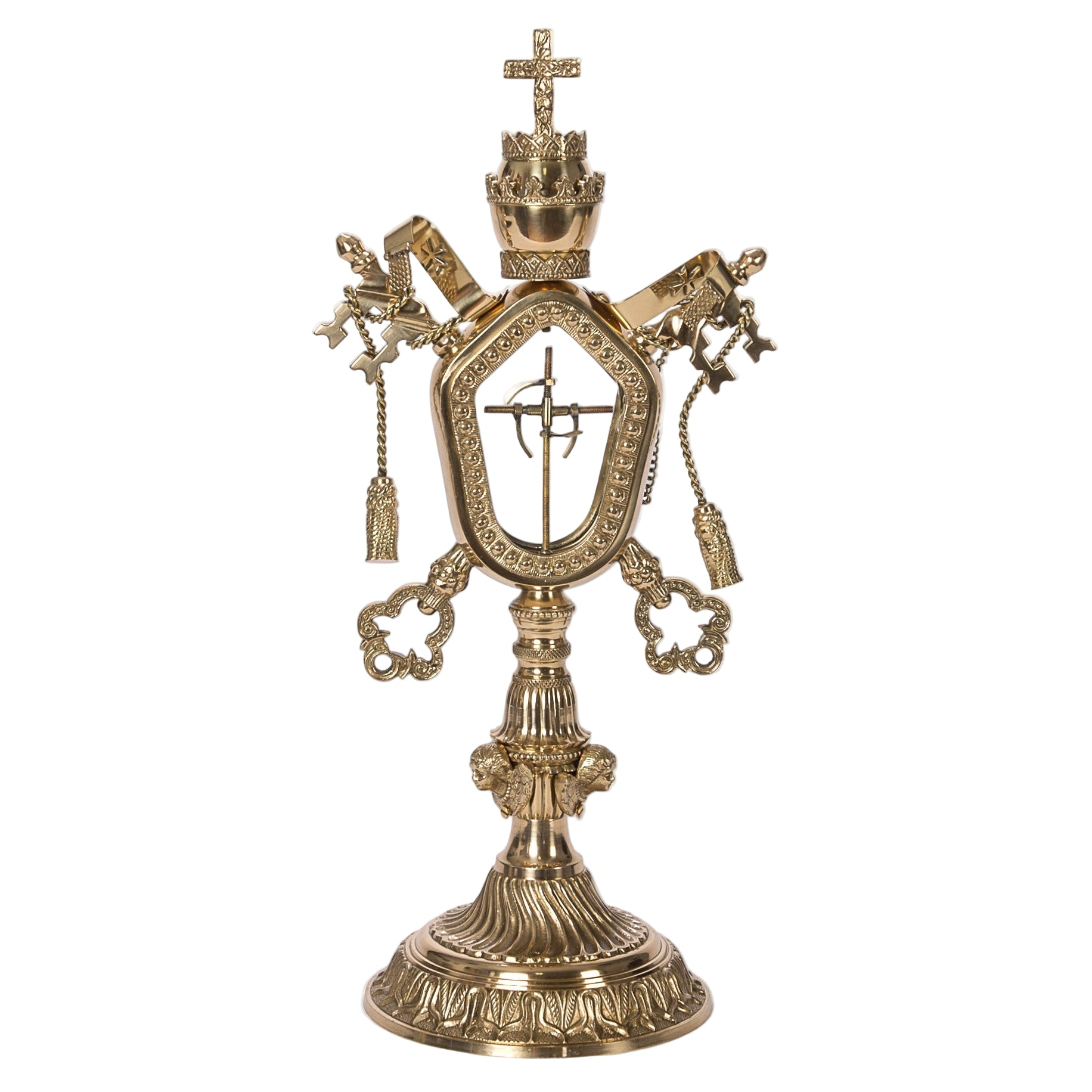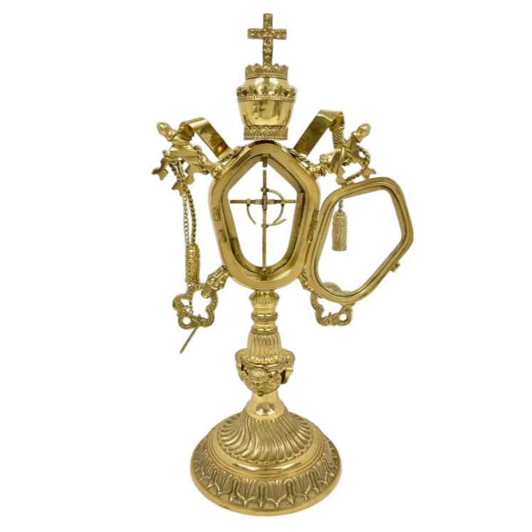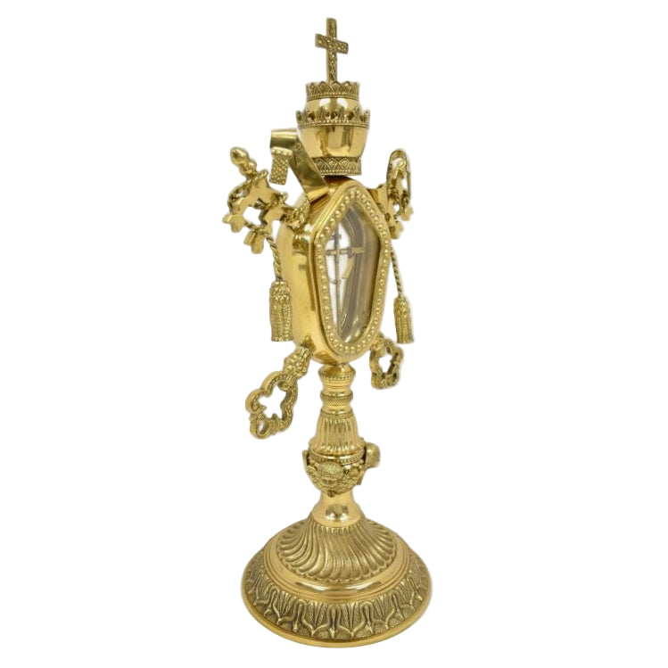 Technical Information:Front Glass View: 2 1/2" x 3 3/4" Relic Compartment Inside: 2 3/4" x 4"Sizes: 17 1/4" Ht, 8 1/4" W, 6" Base DiameterWeight (lbs): 5.2Available Finishes: Brass, Silverplated