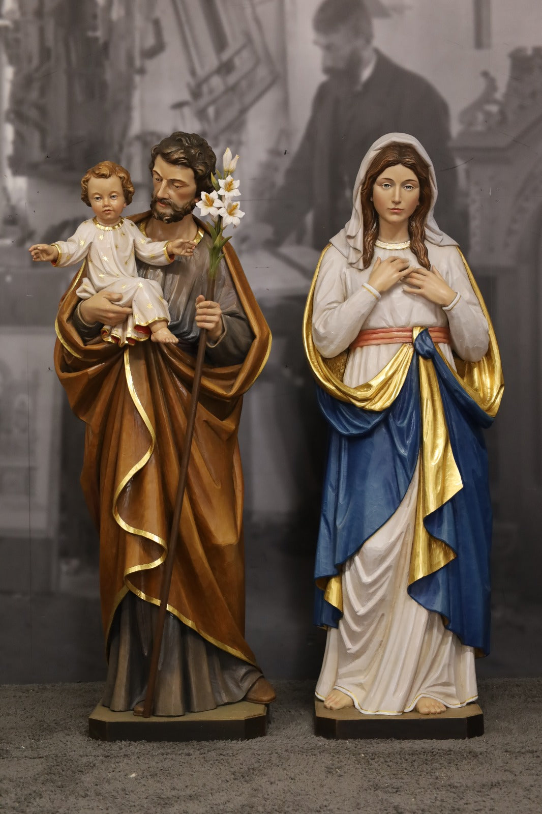 Wood Carved Statues of Mary and St. Joseph with Child