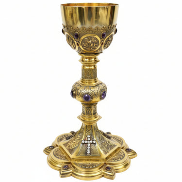 Price: $On RequestItem Information: #CU490 - Older All Sterling Silver Gothic Chalice with Purple Stones. Made by W.J Feeley Co.