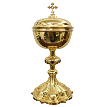 Item Information: #H24 - Vintage All Sterling Silver Ciborium, Large Cup CapacityPurple StonesCall for pricing and info.