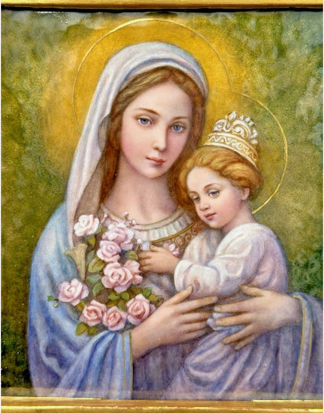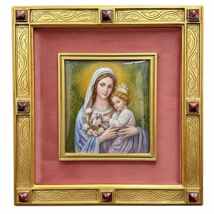 (T-144) Baked Enamel Panel of Mary with Child